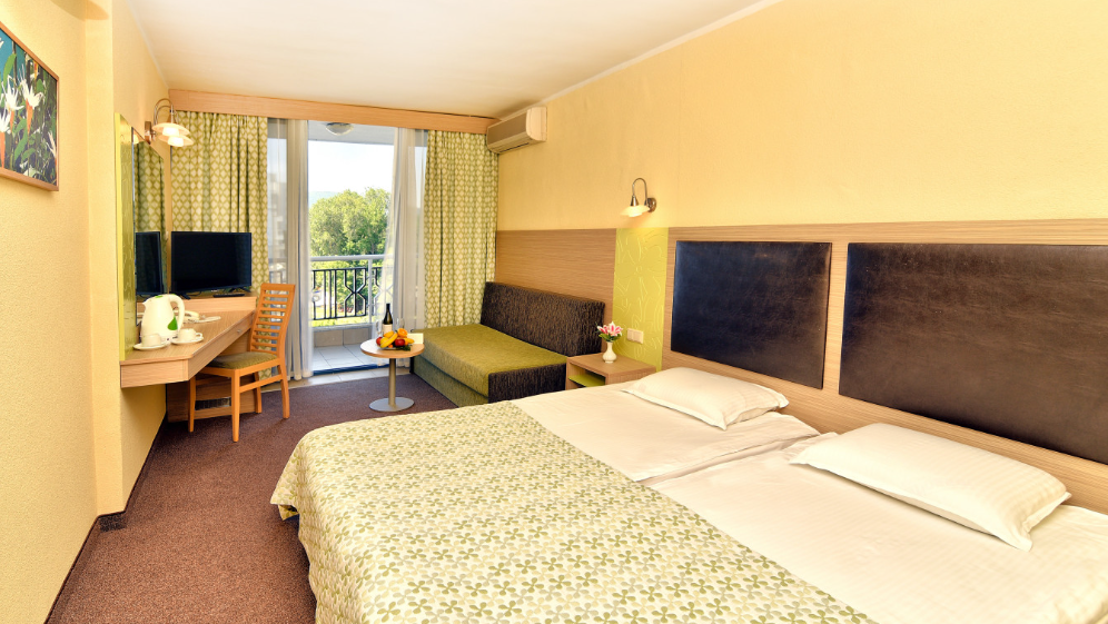 • два односпальні ліжка та розкладний диван (у 107 номерах)
