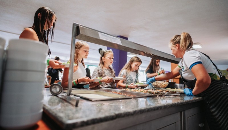 Ресторан розташований на першому поверсі і розрахований на 180 місць. Діти харчуються чотири рази на день (сніданок, обід, полуденок і вечеря) за системою «шведський стіл». Харчування різноманітне та корисне, це супи, салати, м’ясні та нем’ясні страви, овочі та фрукти.