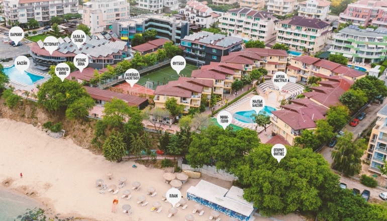 smileyМОЛОДІЖНИЙ ЦЕНТР "МІСТРАЛ" - сучасний комплекс, з масштабною інфраструктурою розміром 10 000 м2, що потопає у зелені, пропонує безліч цікавих вражень та незабутніх морських емоцій. Розташований табір у Св. Власі на березі моря та біля підніжжя Балкан. Таке унікальне поєднання створює всі умови для швидкого оздоровлення, зміцнення імунітету та повноцінного відпочинку.