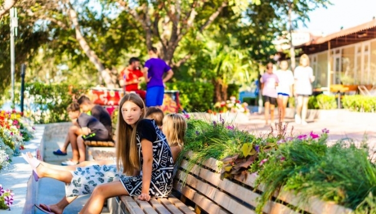 - Проїзд комфортабельним автобусом класу Люкс; - Проживання в 3-4 місних номерах - Харчування 4-ти разове (шведський стіл); - Анімаційна програма; - Користування басейном; - Парасольки та лежаки біля басейну; - Медичне страхування; - Анімація; - Wi-Fi по всій території комплексу; - 1 сейф на групу із 15 дітей. - Користування 2 плавальними басейнами, майданчиками для гри у футбол, волейбол, баскетбол, міні-гольф, настільний теніс, бігові доріжки, фітнес-тренер, релакс площа, критий танцювальний зал, кінотеатр. - На 15 дітей 1 вихователь безплатно.